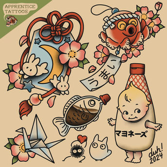 This is a great way to tackle a lot of little tattoos and deigns all in one go, allowing you to either fill the gaps in your sleeve or start a "sticker sleeve". I have an entire collection of designs that are perfect for this purpose, and can even be modified even further to fit any specific shape. Book a session and let work together!